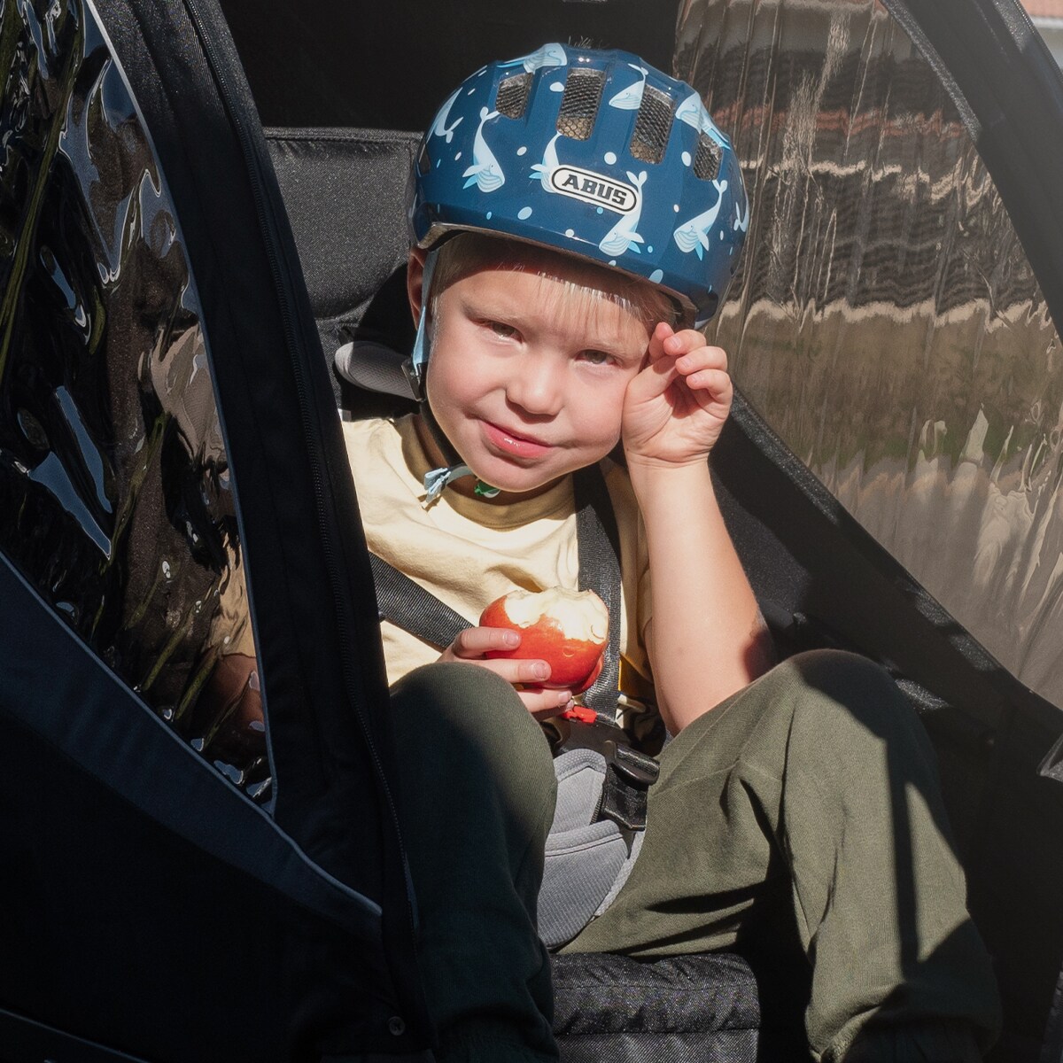 - Platt bakre sida tillåter en perfekt passform sittandes i barnsadel eller cykelvagn