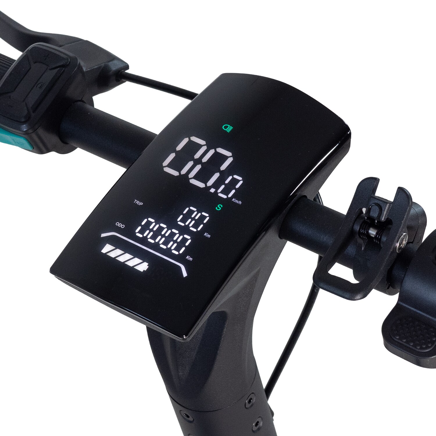 Den stora LCD-displayen visar tydligt allt du behöver: hastighet, batterinivå, räckvidd, trippmätare, cruise control och mer. En inbyggd elektrisk låsfunktion som aktiveras direkt från displayen ger både ökad säkerhet och bekvämlighet. Full laddning tar 6–8 timmar, men du når 80 % kapacitet redan efter 4,5 timmar.