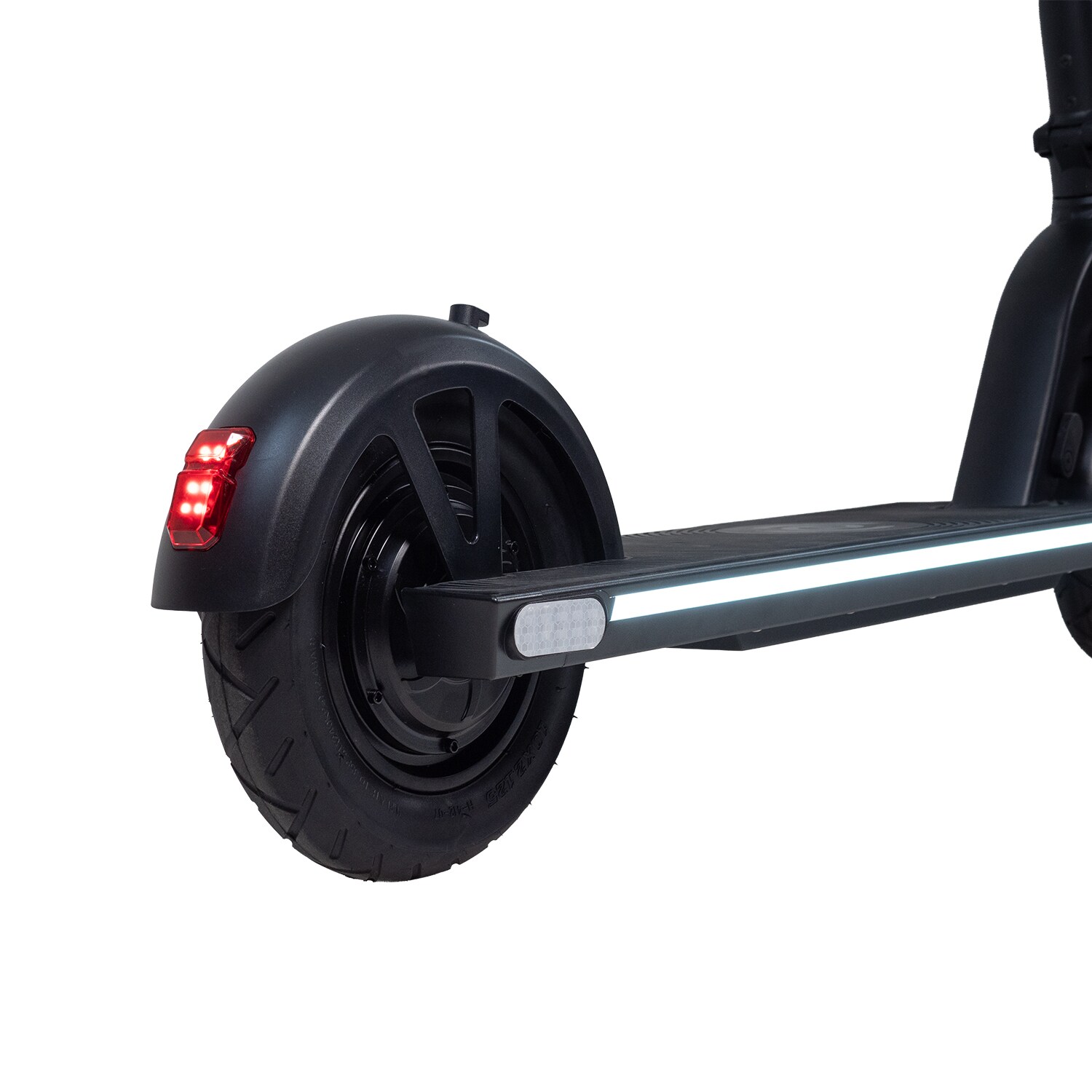 Med en kraftfull 500W motor och ett högkapacitetsbatteri tar du dig smidigt fram upp till 40 km på en laddning. Tre olika hastighetslägen (6–15–20 km/h samt 15–25–30 km/h) gör det enkelt att anpassa farten efter din körstil. De stora 10-tums luftfyllda däcken ger god komfort och utmärkt väggrepp, även på ojämna underlag.