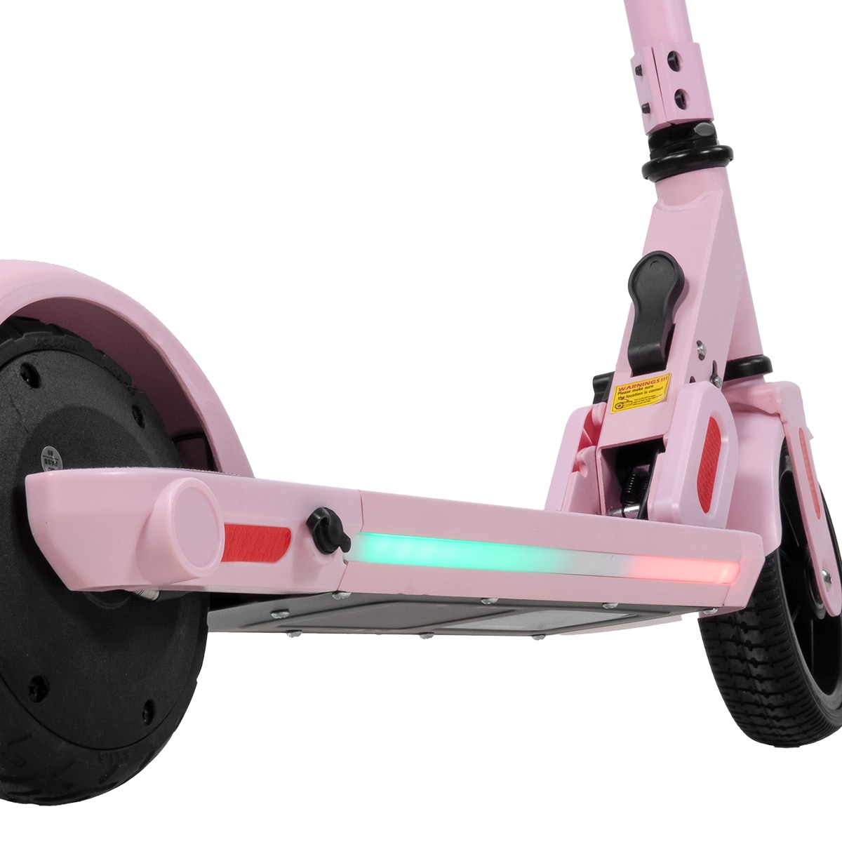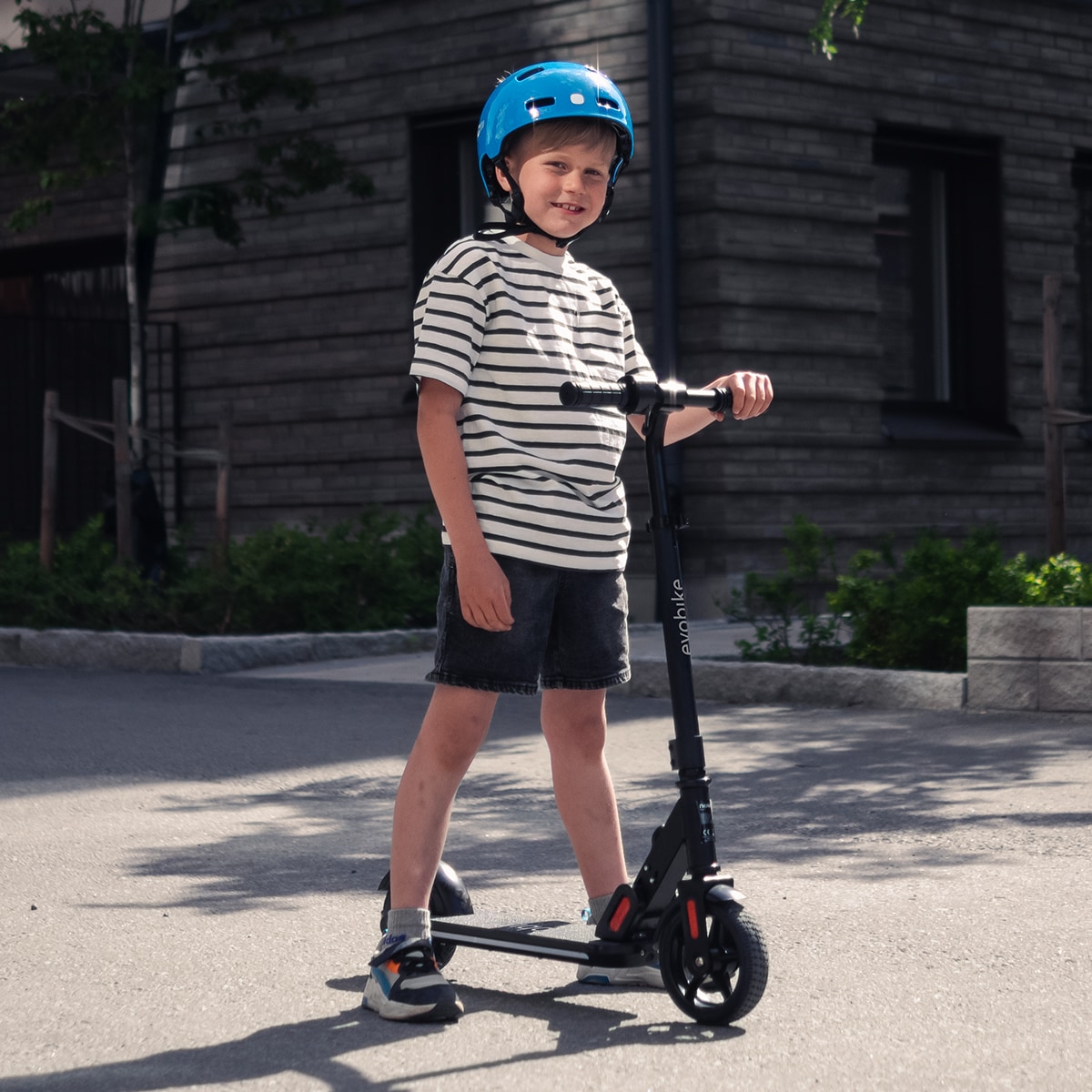 Scoot Jr har en stabil fotbroms bak som ger trygg inbromsning. De solida däcken minskar risken för punktering och ger en bekymmersfri användning. LED-belysningen under fotplattan ökar synligheten och ger en extra cool effekt.
