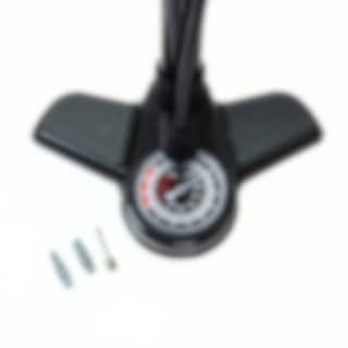 Munstycket på pumpen låser sig fast mot ventilen så att du är säker på att den sitter fast ordentligt och håller tätt. Pumpen har en tryckmätare inbyggd i foten så att du är säker på att däcket får korrekt lufttryck. Eftersom tryckmätaren är integrerad i den rejäla aluminiumkonstruktionen blir den väl skyddad för yttre åverkan.