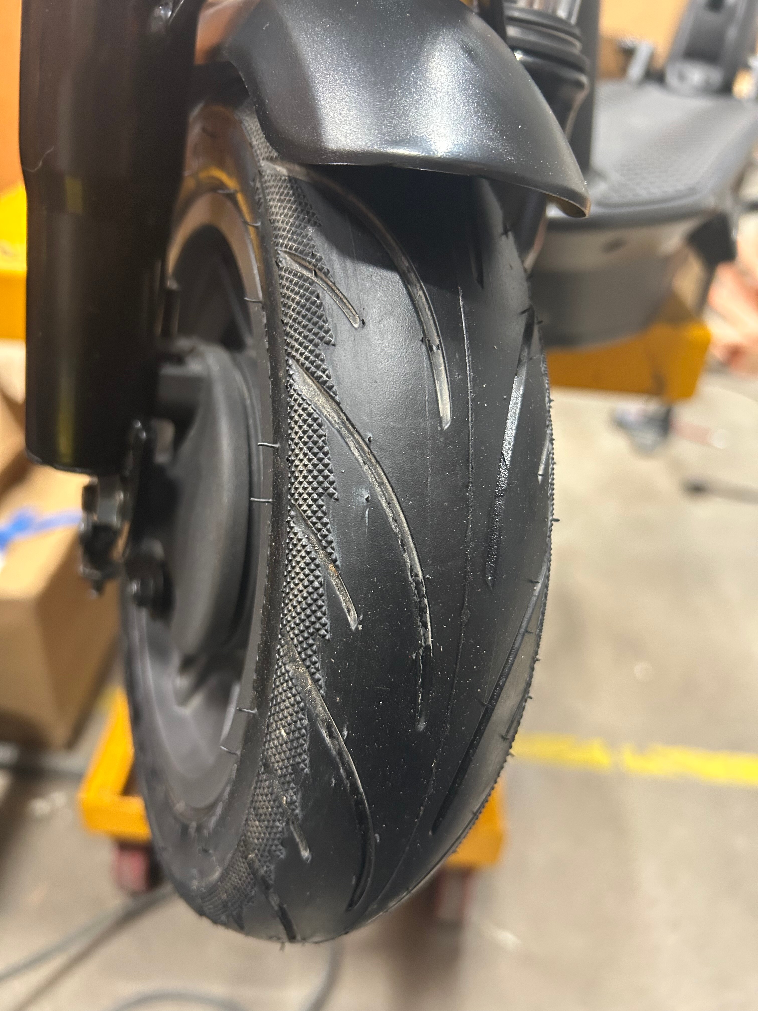 FYNDEX! Scootern är testad utomhus ca 15km. Produkten är i fint skick med spår av utomhusbruk så som mindre smuts på däcken. Det finns mindre färgskav på stödet och i ett hörn på stå plattan, se produktbilder.