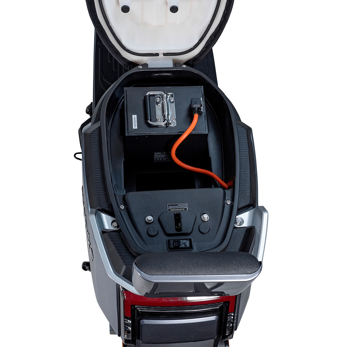 Evobike City Ride 3000W är designad för att leverera en smidig och tyst körupplevelse. Den starka 3000W motorn ger tillräckligt med kraft för att nå en toppfart på 45 km/h, och med en räckvidd upp till 120 km (med dubbla batterier) kan du enkelt pendla längre sträckor utan att behöva oroa dig för att ladda. Batteriet är uttagbart, vilket gör det enkelt att ladda inomhus.