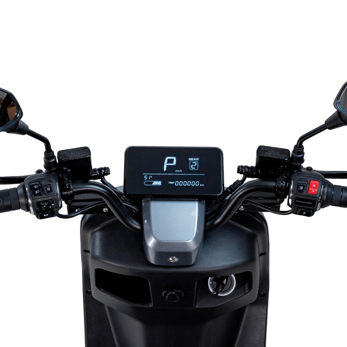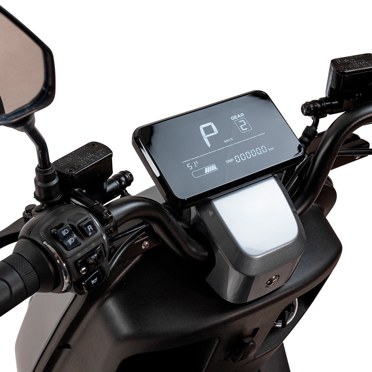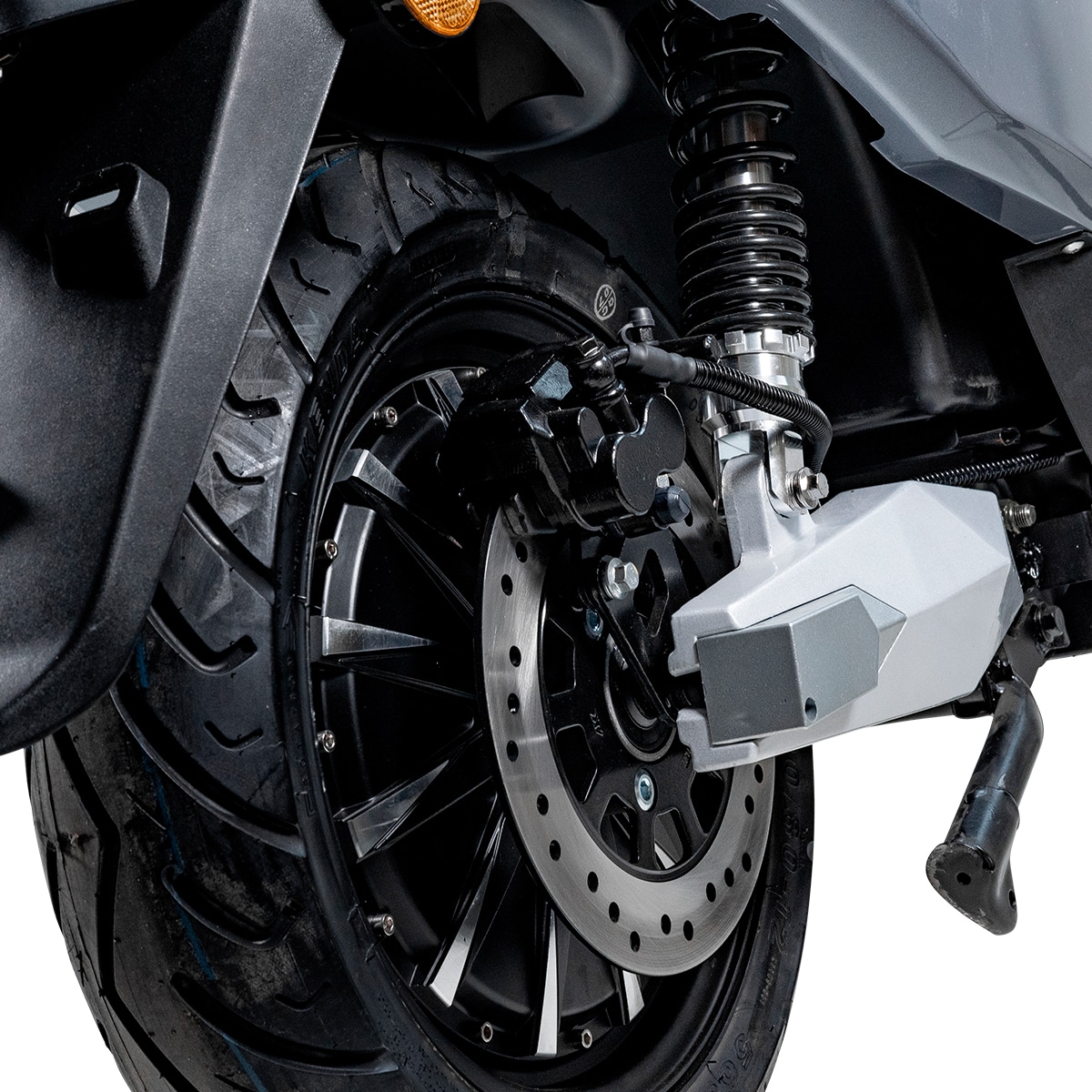 Säkerheten är i fokus med funktioner som hydrauliska skivbromsar fram och bak, samt ett stöldskyddslås för extra trygghet. Elmopeden har också modern belysning både fram och bak samt blinkers, vilket gör dig synlig och säker i trafiken.