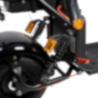 De enorma däcken gör att du tar dig fram komfortabelt på såväl släta som ojämna underlag. Dessutom är scootern försedd med stötdämpning både fram och bak. Den kraftfulla elmotorn med 1500W effekt gör att du kryssar uppför backar med enkelhet. Toppfarten mäter ca: 45 km/h och det med god acceleration.
